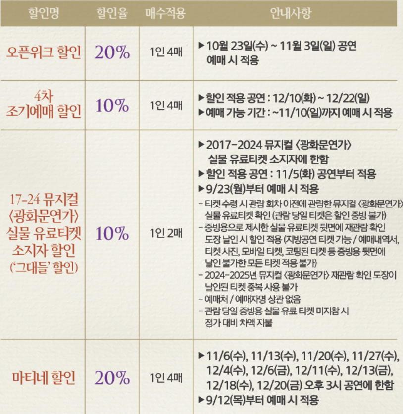 이번 포스팅에서는 광화문연가의 공연 일정, 출연진, 티켓 예매, 할인정보에 대해 자세히 안내드리겠습니다.