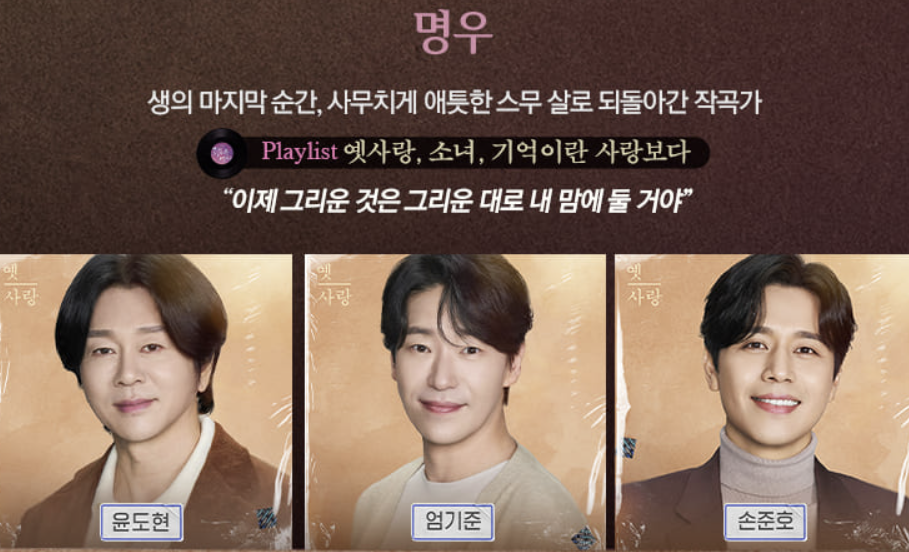 - 명우: 윤도현, 엄기준, 손준호