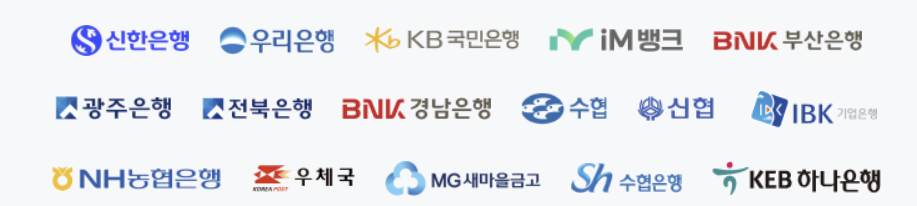 - 국민은행, 신한은행, 우리은행, 하나은행, IBK기업은행 등 주요 시중 은행
