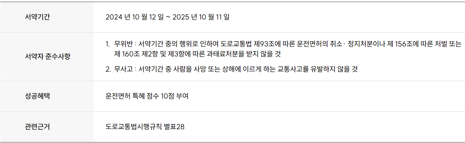 - 마일리지: 1년 동안 무사고, 무위반을 달성하면 10점 적립